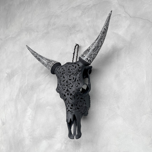 AanbiedingTwisted Bloom | Gegraveerde Koeienschedel
