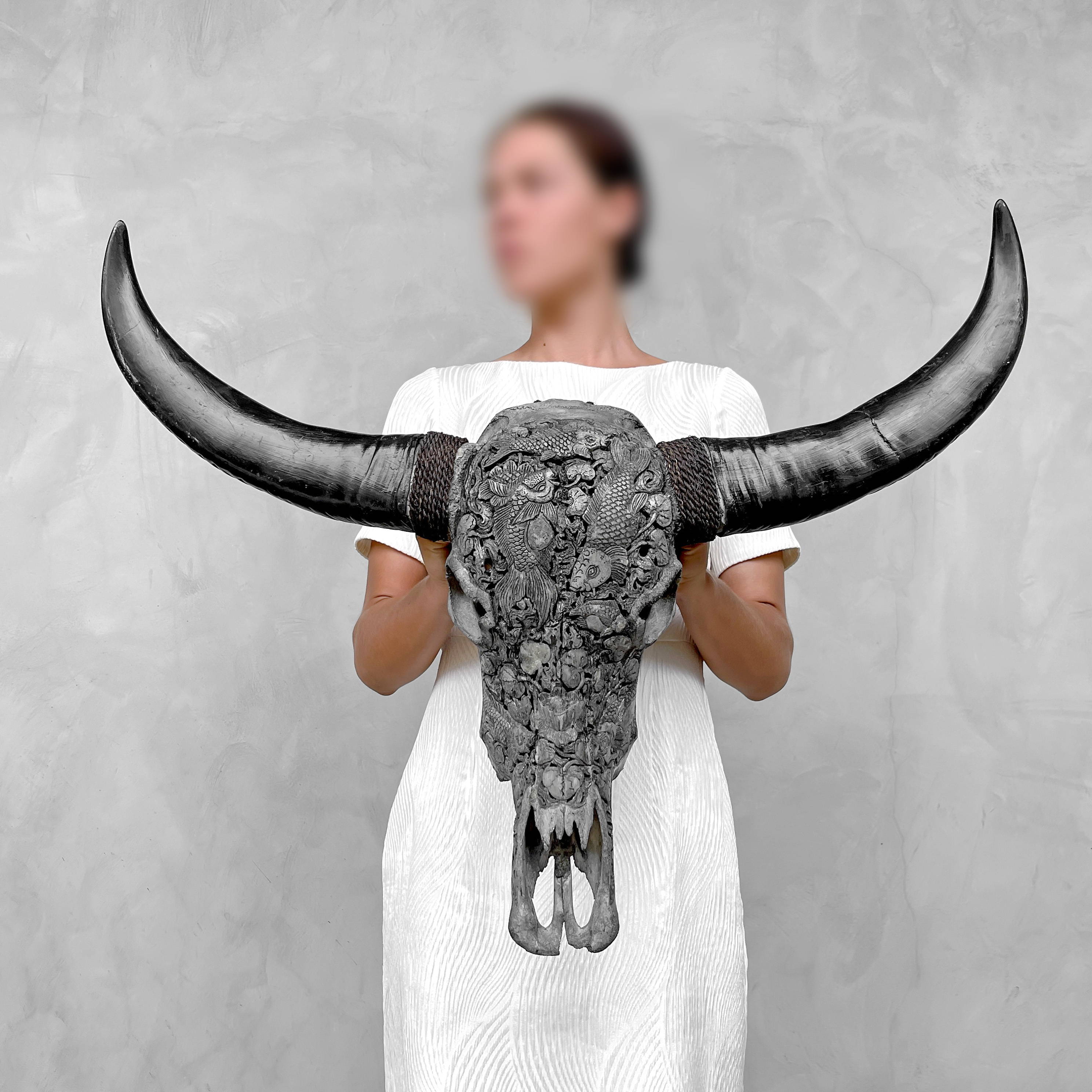 Onze authentieke schedels zijn het bijproduct van de lokale Balinese landbouwindustrie. Deze zouden anders afvalproducten zijn, maar wij maken er gedetailleerde kunstwerken van.