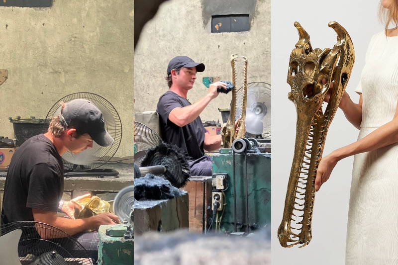 Al onze bronzen sculpturen zijn gemaakt van 100% gerecyclede bronzen onderdelen afkomstig uit Java. Deze onderdelen worden samengesmolten tot het perfecte mengsel, waardoor elk stuk een gouden gloed krijgt.